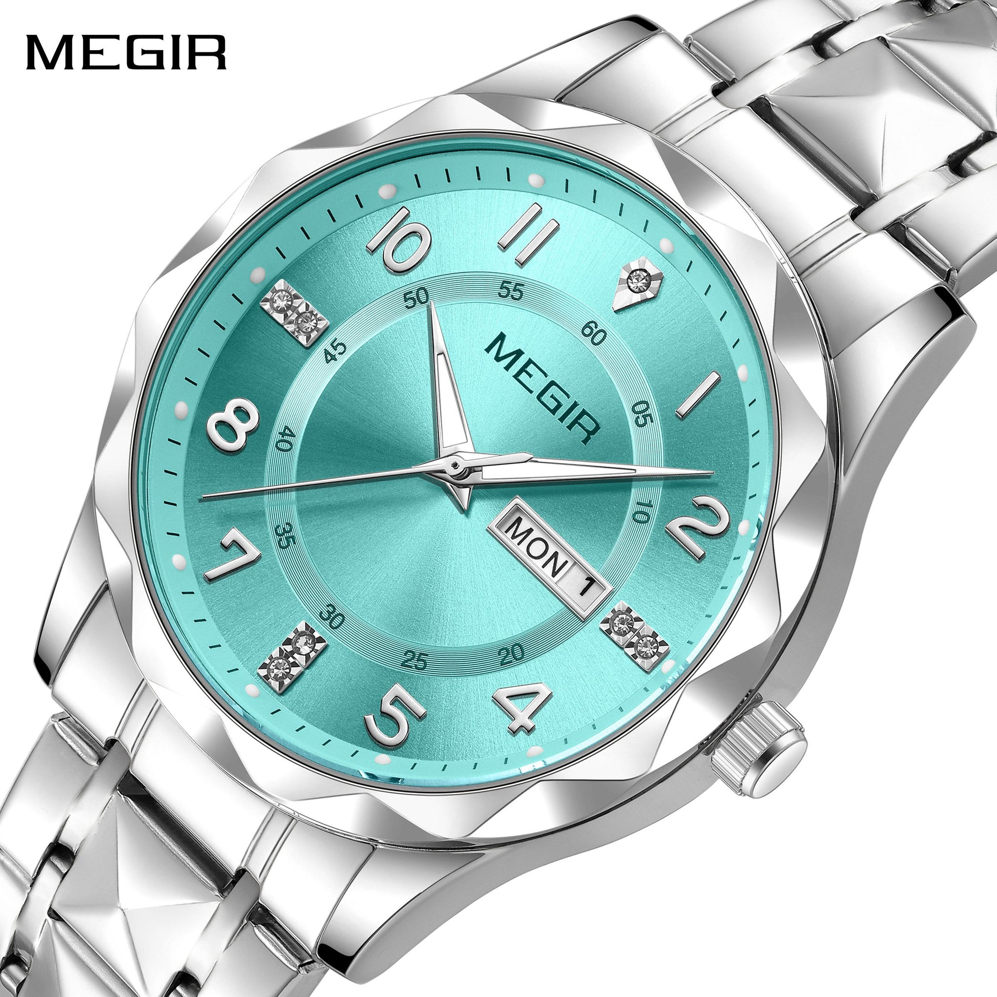 MEGIR Luxury Business Men Watches Stainless Steel Strap Clock Quartz Casual Wristwatch Waterproof Calendar Week Display 1093
